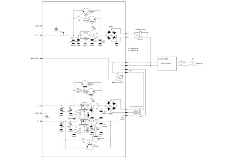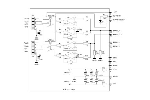 The output stage boards can be configured as pre-out or rec-out. In pre-out configuration the output signal is controlled by the volume control and in rec-out the selected input is amplified and send out to the output of the board.