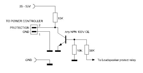 When the amplifier powers UP the relay will be turned OFF and a signal ‘high’ will be applied to the controller input and the