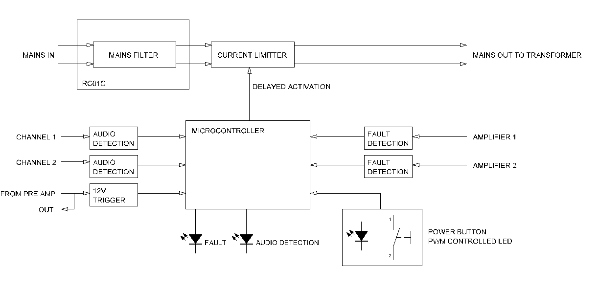 Indicator LED for both 12V trigger and audio detect indicator.
